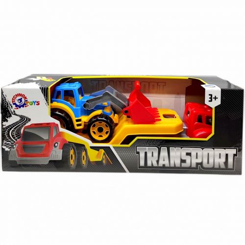 Пластиковий помаранчевий автовоз з заїздом. У комплекті також йде трактор.