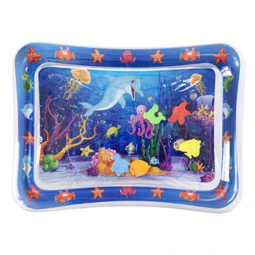 Яскравий та цікавий аксесуар для дитячих веселощів. Завдяки постійному коливанню та різноманітним фігуркам кольорових рибок водяний килимок створює веселий досвід для немовлят. Процес гри дуже простий: достатньо заповнити килимок водою, поставити його на рівну поверхню і помістити малюка животиком донизу. Ця іграшка сприяє розвитку дитячого рухового апарату, координації рухів та зорового сприйняття. Розміри коврика 69 х 50 х 8 см. Для дітей від трьох місяців.