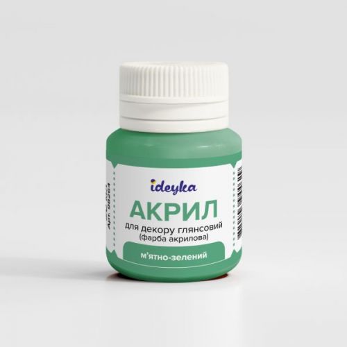 Акрилова фарба ТМ Iдейка 20мл, М`ятно-зелена (98264). Фарба екологічна, виготовлена з високоякісних органічних і неорганічних пігментів. Кремова консистенція фарби дозволяє використовувати її відразу, без додаткового розведення. Фарба рівномірно лягає і швидко висихає. Може використовуватися для нанесення на полотно, картон, папір, дерево і інші поверхні.