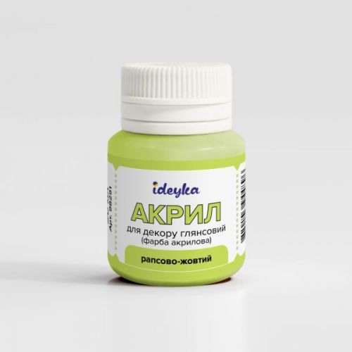 Акрилова фарба ТМ Iдейка 20мл, Рапсово-жовта (98291). Фарба екологічна, виготовлена з високоякісних органічних і неорганічних пігментів. Кремова консистенція фарби дозволяє використовувати її відразу, без додаткового розведення. Фарба рівномірно лягає і швидко висихає. Може використовуватися для нанесення на полотно, картон, папір, дерево і інші поверхні.