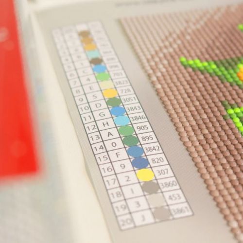 Комплектація: полотно з клейовим шаром і кольоровою схемою без підрамника, – акрилові стрази згідно комплектації набору (круглі) та голограмні АВ-стрази,, – спеціальна ручка-стилус для роботи зі стразами з м’яким тримачем та 3 додаткових насадки для нього: для 3-х і 9-ти камінчиків-стразів, та насадка для вирівнювання стразів на полотні, – два гель-клея, – лоток для сортування стразів, – зіп-пакети для стразів, – інструкція.