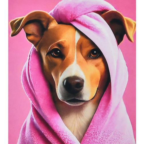 Алмазна мозаїка “Пес в рожевій ковдрі”, 30х40 см
