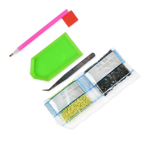 Комплектація: полотно із зображенням, ручка-стилус, гель-клей, акрилові стрази згідно комплектації набору