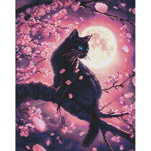 Алмазна мозаїка “Чарівний кіт серед сакури” 40х50 см