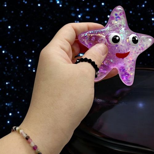Яскрава жуйка-тягнучка для рук у вигляді морської зірочки підніме настрій як малюку, так і дорослому. Виконана із напівпрозорого силікону з блискітками. Іграшку можна стискати, розтягувати, а вона знову прийматиме свою початкову форму. Все завдяки специфічному гелеподібному наповнювачу. Розмір антистресу – 9х9х3 см. Виготовлено з якісних та безпечних матеріалів.