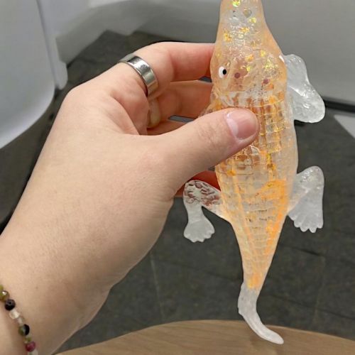 Яскрава жуйка-тягнучка для рук у вигляді милого персонажа підніме настрій як малюку, так і дорослому. Виконана із напівпрозорого силікону з блискітками. Іграшку можна стискати, розтягувати, а вона знову прийматиме свою початкову форму. Все завдяки специфічному гелеподібному наповнювачу. Розмір антистресу – 17х4х3 см. Виготовлено з якісних та безпечних матеріалів.