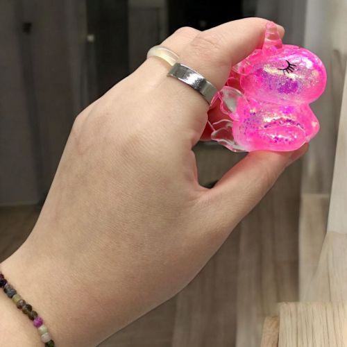 Яскрава жуйка-тягнучка для рук у вигляді милого єдинорога підніме настрій як малюку, так і дорослому. Виконана із напівпрозорого силікону з блискітками. Іграшку можна стискати, розтягувати, а вона знову прийматиме свою початкову форму. Все завдяки специфічному гелеподібному наповнювачу. Розмір антистресу – 6х3х3 см. Виготовлено з якісних та безпечних матеріалів.
