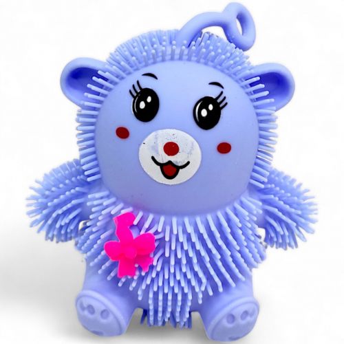 Кумедна світяшка у вигляді кошлатого ведмедика. Гумовий ведмедик порожній всередині й наповнений повітрям по типу надувної кулі. Всередині іграшки також є пластикова світяшка, що активується при ударі об поверхню. Розмір іграшки – 9х8х5 см. Виконано з якісних та безпечних матеріалів. Для дітей старше 3-х років. Якщо іграшка трошки здута, можна накачати її за допомогою звичайного медичного шприца з голкою (на іграшці є спеціальний отвір).