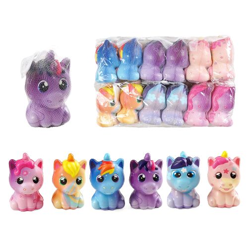 Ароматний сквіш у вигляді милого єдинорога. Сквіш – це іграшка-антистрес, яка після натискання на неї повільно повертає свою колишню форму. Розмір даної іграшки – 9,5х6х5,5 см. Дітям корисна тим, що розвиває дрібну моторику та заспокоює нерви. Має приємний, солодкий запах. В наборі 12 сквішів.