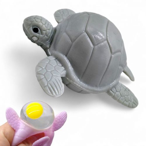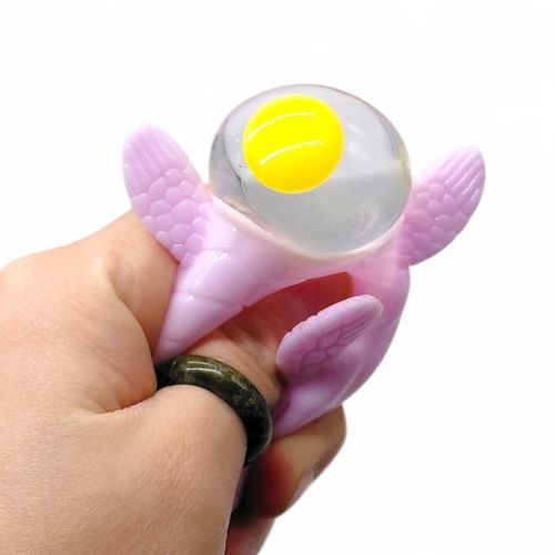 Цікава іграшка-антистрес у вигляді черепашки. В черепашку поміщена кулька з гелевим наповнювачем подібна до сирого яйця. Якщо натиснути на черепашку, кулька-яйце вилізе назовні; відпустити – сховається в середину черепашки. Виготовлено з якісних та безпечних матеріаліі. Рекомендовано для дітей старше 3-х років.