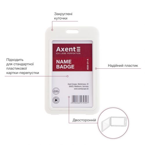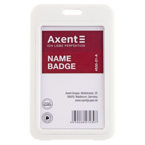 Бейджі незамінні при проведенні конференцій, нарад, тренінгів, а також для співробітників, які постійно взаємодіють з великою кількістю людей (співробітники підприємств, культурних закладів, працівники банківської сфери, продавці, екскурсоводи і т.д.). Бейдж вертикальний Axent зі щільного пластику ідеально підійде, щоб стати візитною карткою, ідентифікуючим пропуском співробітника. Двосторонній. Розмір бейджа: 70х110 мм. Розмір вкладиша: 50х85 мм