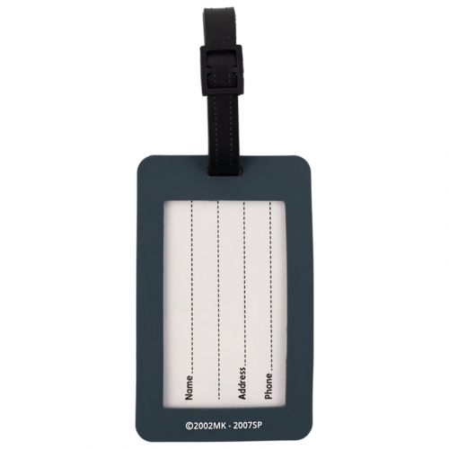 Бейдж на багаж з PVC матеріалу, з полем для персональних даних, яке захищене прозорим пластиком, кріплення: гумова петля-фіксатор. Упаковка: картонна планшетка, запакована у прозорий поліетиленовий пакетик з клейкою стрічкою