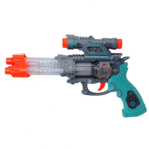 Пістолет на батарейках – це захоплива іграшка для юних шанувальників космічних пригод! Оснащений реалістичними звуками пострілу та яскравим 3D підсвічуванням, яке пожвавлює гру та створює атмосферу фантастичної битви. Компактний та зручний, цей бластер стане відмінним вибором для активного дозвілля та розвитку уяви.
