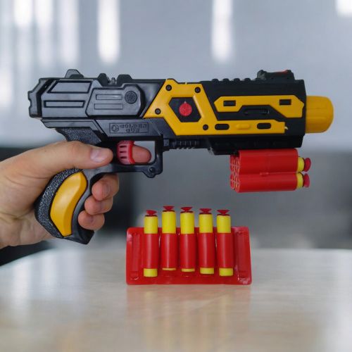 Бластер із мʼякими поролоновими патронами на присосках – ідеальна іграшка для активних ігор. У комплект входить зручний тримач для снарядів, який можна носити на поясі, та тримач для встановлення на пістолет, забезпечуючи швидкий доступ до боєзапасу. 9 патронів у комплекті.
