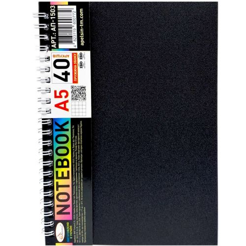 Блокнот оснащений міцною пластиковою обкладинкою, яка захищає сторінки від пошкоджень та зминання. Бічна металева пружина дозволяє легко перегортати аркуші та відкривати блокнот на 180 градусів, що робить користування більш зручним. Усередині розміщені сторінки з розліновкою у клітинку, що підходить для записів, нотаток, схем або навчальних завдань.