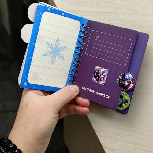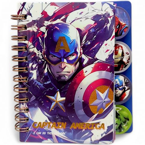 Маленький блокнотик виконаний у супергеройській тематиці. Компактний та зручний для внесення різноманітних записів та нотаток. Розмір блокнота – 11,6х9,2 см. Тип скріплення аркушів – пружина. У блокноті 70 аркушів у лінійку. Виготовлено з якісних та безпечних матеріалів.