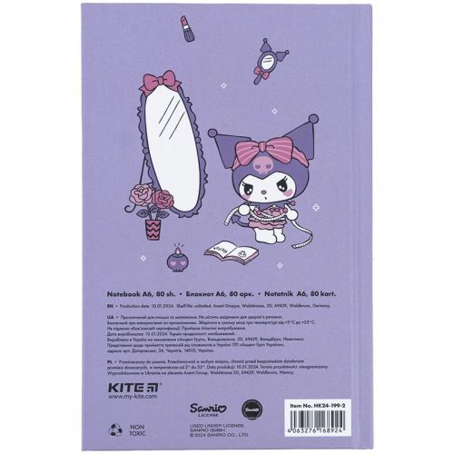 Стильний блокнот у гарному дизайні. Зручний формат А6 (11 х 17 см) – місткий та компактний. 80 білих гладких аркушів у клітинку. На обкладинці зображена Куромі – популярна героїня серії “Sanrio”. У ньому зручно робити будь-які записи, малювати чи креслити. Обовʼязково знадобиться в школі і вдома.