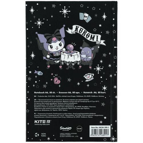 Стильний блокнот у гарному дизайні. Зручний формат А6 (11 х 17 см) – місткий та компактний. 80 білих аркушів у клітинку. На обкладинці зображена Куромі – популярна героїня бренду “Sanrio”. У ньому зручно робити будь-які записи, малювати чи креслити. Обовʼязково знадобиться в школі і вдома.