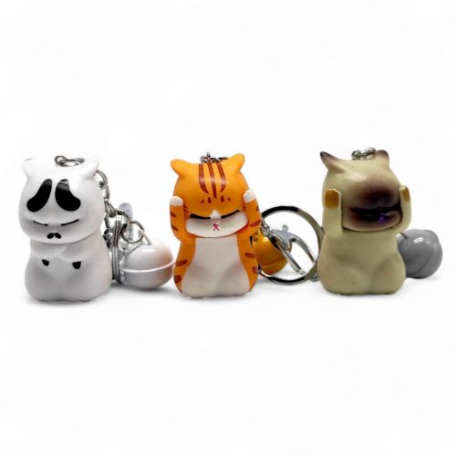 Милесенький брелок у виді котика який схрещує руки або закриває ними вуха. Ідеально підійде в якості прикраси для сумки або одягу, також можна прикріпити до звʼязки ключів. Має 3 кольорових варіанти – чорно-білий, помаранчевий, та сіамський. Розмір фігурки без кільця – 4.5 см.