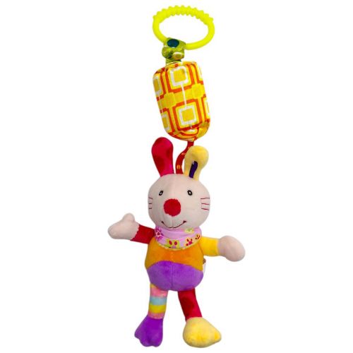 Це м’яке брязкальце створене спеціально для маленьких ручок. Іграшка легко тримається завдяки зручній формі, що дозволяє малюкові самостійно хапати, стискати та досліджувати її під час гри. До іграшки прикріплений дзвіночок та пластикова кліпса за яку брязкальце добре фіксується на ліжечку чи колясці. Довжина брязкальця (з кріпленням) – 33 см. Виконано з якісних та безпечних матеріалів.
