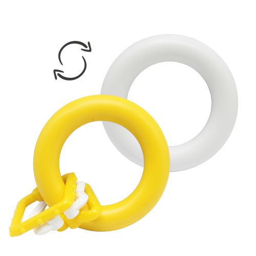 Мила брязкальце порадує малюка. Виконана у вигляді кільця, завдяки чому малюку зручно триматиме іграшку навіть однією ручкою. На брязкальці є додаткові кільця, які при необхідності можна зняти. Діаметр брязкальця – 9 см. Виконано з якісних та безпечних матеріалів. Для дітей від 3 місяців.