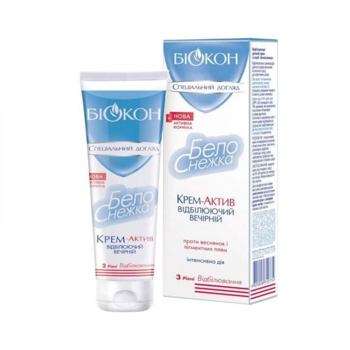 Крем для обличчя Біокон Білосніжка Відбілювальний Вечірній крем-актив – це інноваційний засіб, який допомагає знизити вміст пігментації шкіри та підвищити її візуальний тон. Завдяки вмісту активних компонентів, цей крем допомагає вирівняти тон шкіри, зменшити вікові плями та надати обличчю свіжий, сяючий вигляд. Засіб має легку текстуру, добре вбирається та забезпечує відмінний догляд за шкірою. Спробуйте крем для обличчя Біокон Білосніжка Відбілювальний Вечірній крем-актив і насолоджуйтесь бездоганною шкірою кожен день.