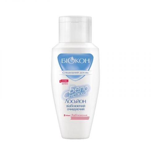 Лосьйон Білосніжка Відбілювальний поєднує в собі очисну й відбілювальну дії:видаляє залишки макіяжу, відлущує клітини та токсини;тонізує, зволожує й освіжає шкіру;завдяки екстракту білої лілії й вітаміну С має мʼяку освітлювальну дію;покращує колір обличчя й готує шкіру до дії основних засобів вибілювальної серії “Білосніжка”. Спосіб застосування: змочіть ватний диск невеликою кількістю лосьйону та проводьте їм по шкірі обличчя.