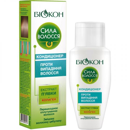 Кондиціонер Сила Волос Проти випадання волосся відновлює пошкоджене волосся, живить ослаблені корені й сприяє росту волосся. Спеціальні кондиціонувальні компоненти склеюють лусочки кутикул волосся, забезпечують гладкість, легкість під час розчісування та перешкоджають сплутуванню волосся.
