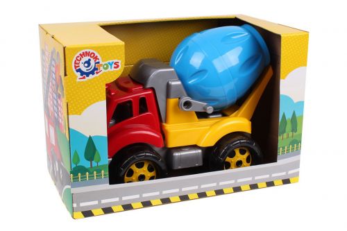 Яскравий пластиковий вантажівка-автоміксери. У машинки можна крутити барабан. Відкидається кузов.