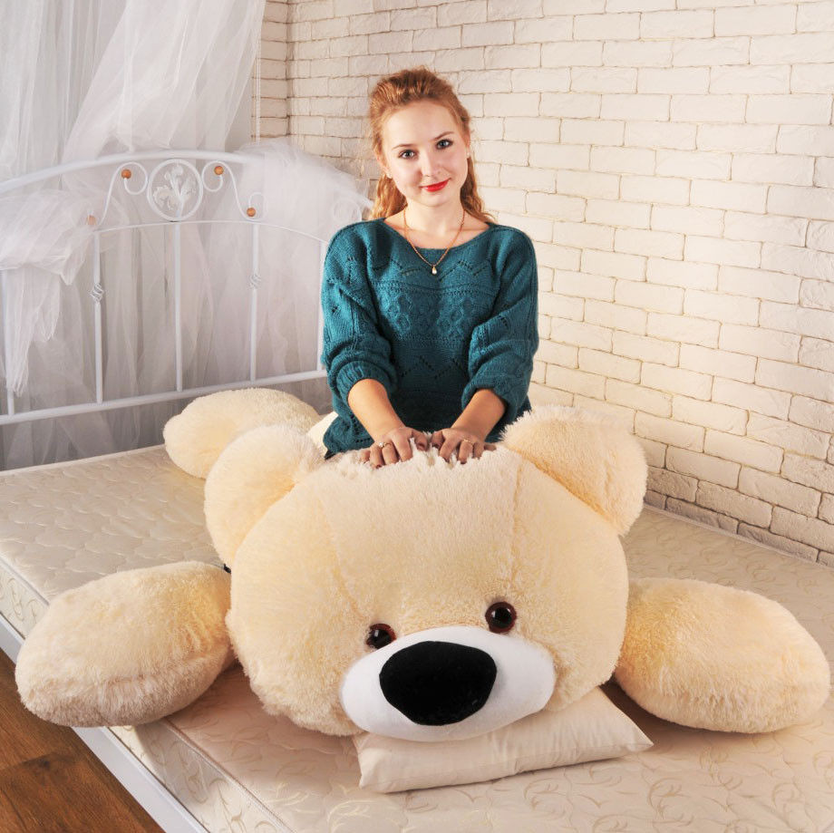 Великий плюшевий ведмідь Умка лежачий 180 см Великий плюшевий ведмедик Умка 180 см персикового кольору – це ідеальне поєднання кольору та розміру. Персиковий відтінок – одразу викликає у людини асоціації із соковитими персиками, які наповнені сонцем та теплом. Також цей колір уособлює романтичну привабливість та спокій на душі. Великий плюшевий ведмідь користується популярністю не лише серед дітей, а й серед дівчат. Для дівчини асоціація з людиною, яка принесе іграшку, миттєво дає можливість відчути себе коханою. Тому чоловіки будь-якого віку знають, як порадувати свою коханою, навіть якщо вони перебувають за межами України. Плюси Великого Ведмедя Умка: Український виробник Гіпоалергенний матеріал Вакумна упаковка