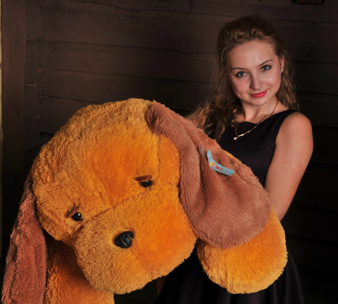 М’яка іграшка собака Тузік 140 див. Забарвлення основного матеріалу: білий, персиковий, медовий. Додатковий колір: коричневий. Положення плюшевої іграшки ― лежаче. Добродушний і вірний пес Тузик складе компанію вашій дитині не тільки вдома, але і на вулиці. Грати з плюшевою собакою вдвічі приємніше, адже її зріст досягає 140 див. М’який матеріал приємно обіймати і гладити. З таким товаришем малюк буде весело та активно проводити свій вільний час. Для виготовлення плюшевої іграшки українська фабрика використовує високоякісний штучне хутро. Як набивання вироби застосовується універсальний сучасний матеріал – холлофайбер. Він відмінно тримає форму, не скочується і перешкоджає скупченню пилу.