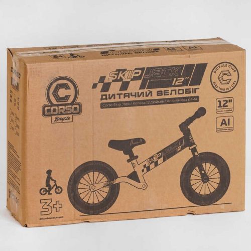 Велобіг “Corso Skip Jack” ЧОРНО-ЧЕРВОНИЙ (надувні колеса 12, сталева рама з амортизатором, ручне гальмо, підніжка)