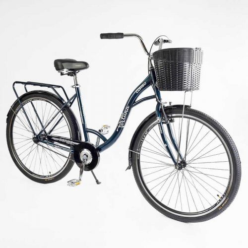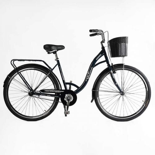 Велосипед міський Corso «FORTUNA» 28“ FR-28083 + КОШИК ТЕМНО-ЗЕЛЕНИЙ, одношвидкісний, сталева рама 20“, корзина, багажник