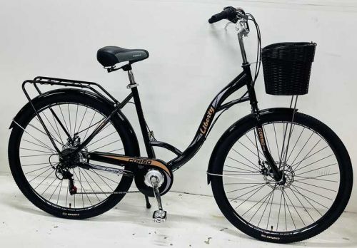Велосипед міський Corso «Liberty» 28’’ дюймів + КОШИK, ЧОРНИЙ, сталева рама 20“, Shimano 7 швидкостей, корзина, багажник