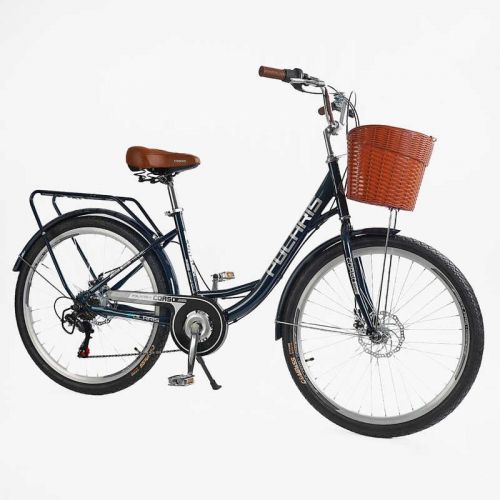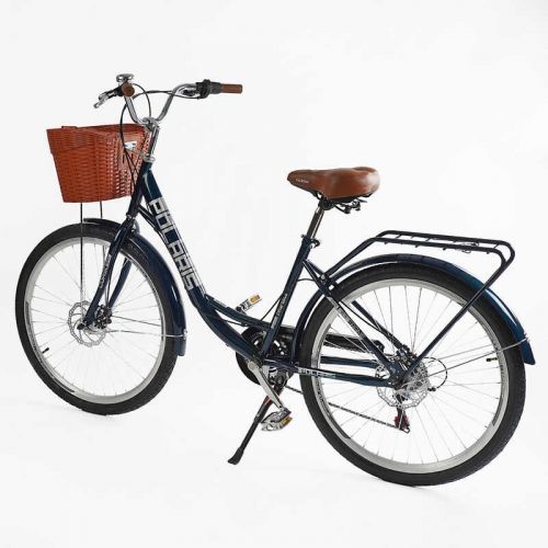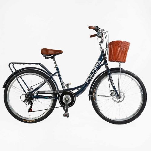 Велосипед міський Corso «Polaris» 26“ PS-12833 + КОШИК СИНІЙ сталева рама 16.5“, Shimano 7 швидкостей, корзина, багажник