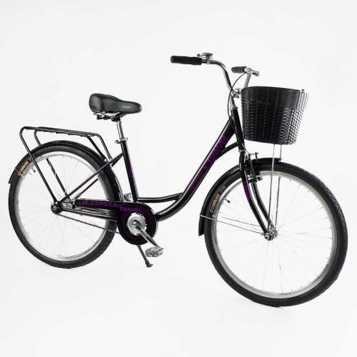 Велосипед міський Corso «TRAVEL» 26“ одношвидкісний, сталева рама 16.5“, корзина, багажник
