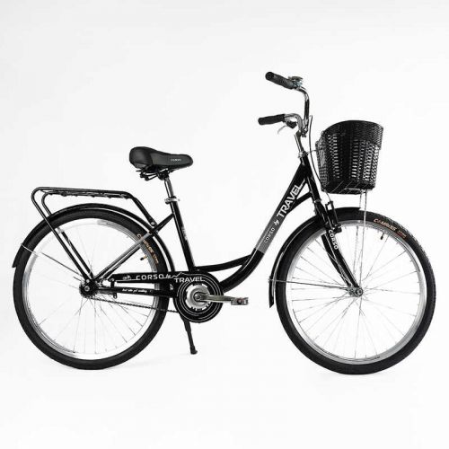 Велосипед міський Corso «TRAVEL» 26“, одношвидкісний, сталева рама 16.5“, корзина, багажник