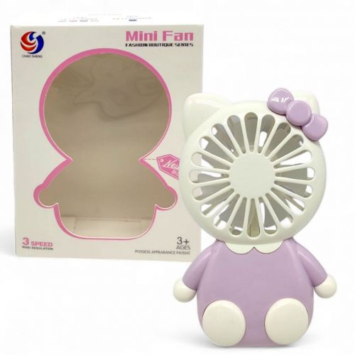 Вентилятор який врятує вас від спеки. Має 3 рівні потужності та працює понад 6 годин, при ввімкнені світиться кольорами веселки. Дизайн у вигляді хелоу кіті, в серії присутні 4 забарвлення. Розмір вентилятора – 14 см. Виготовлений з полімерних матеріалів. Рекомендовано для діток старше 3-х років.
