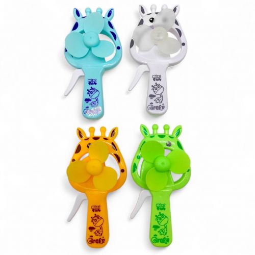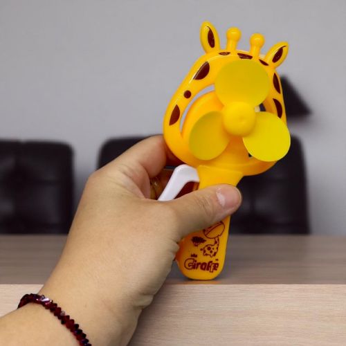 Вентилятор, який врятує вас від спеки. Натискай на ручку, щоб відчути приємний потік повітря. Дизайн у вигляді жирафа, в серії присутні різноманітні забарвлення. Розмір вентилятора – 15 см. Виготовлений з пластику. Рекомендовано для діток старше 3-х років.