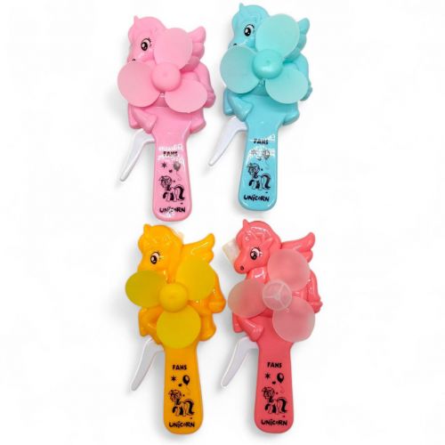 Вентилятор, який врятує вас від спеки. Натискай на ручку, щоб відчути приємний потік повітря. Дизайн у вигляді єдинорога, в серії присутні різноманітні забарвлення. Розмір вентилятора – 15 см. Виготовлений з пластику. Рекомендовано для діток старше 3-х років.