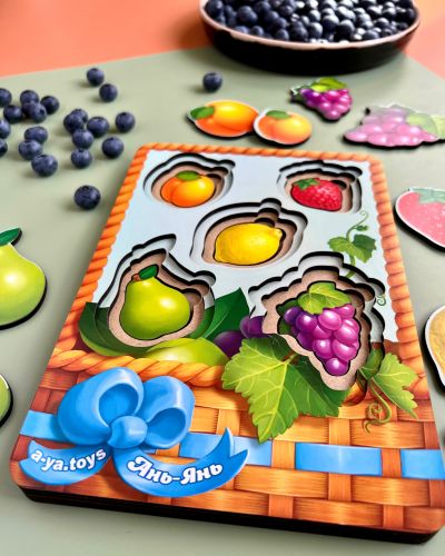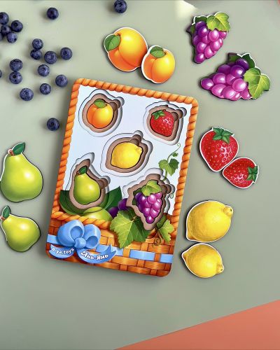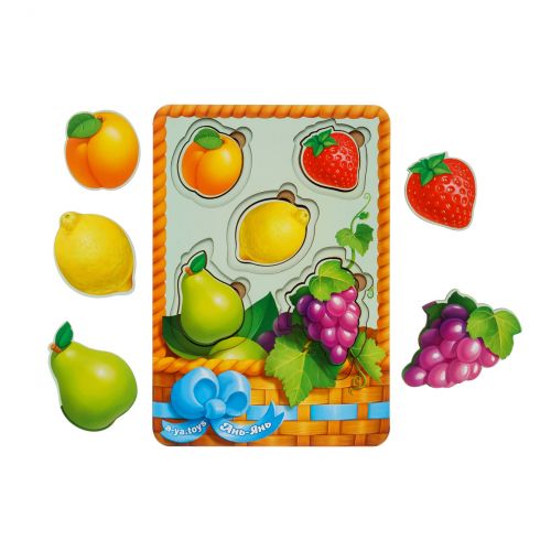 Дерев’яні вкладиші будуть відмінним подарунком для дитини. Кожну картинку-вкладиш потрібно встановити в призначену для неї ямочку. В одній ямочці розміщується по 3 вкладиша від маленького до великого. Розмір рамки – 16х23 см.