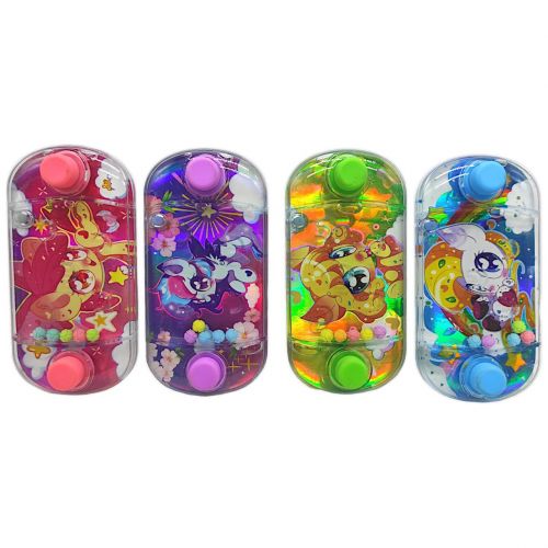 Водна гра з кульками нагадує гру з кільцями – за допомогою гумових кнопочок з обох боків потрібно закинути гумові кульки на жолобки. Усередині іграшка наповнена водою. Має міцний та надійний корпус, а яскравий дизайн задньої панелі обовʼязково приверне увагу дітей. Різні види в асортименті.
