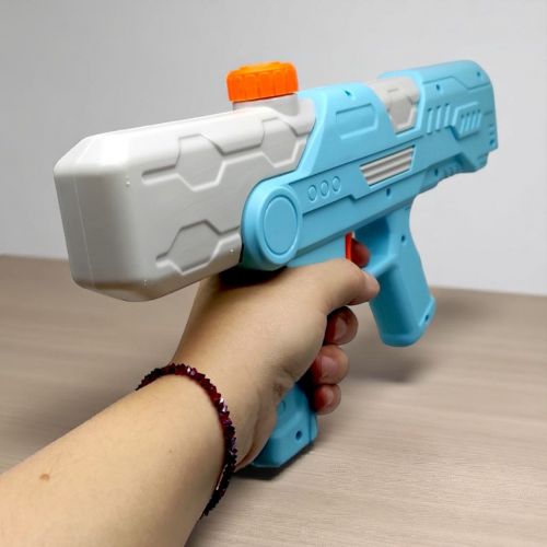 Водяний пістолет з насосом – ідеальний вибір для активних літніх ігор на свіжому повітрі! Завдяки насосній системі струмінь води потужний і далекобійний – ідеальний для захопливий водних битв у дворі або на пляжі. Зручна форма пістолета дозволяє дітям легко тримати його в руках і насолоджуватися грою.