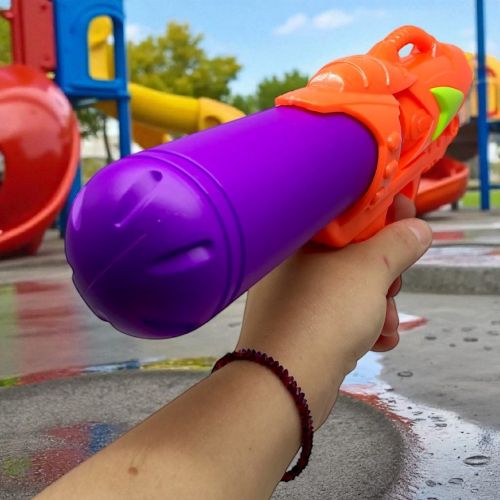 Водяна зброя, щоб намочити кожного хто стане на твоєму шляху! – але краще не попадати в обличчя. В серії присутні різноманітні забарвлення, з фіолетовим елементом. Розмір пістолета – 31х6х15 см. Виготовлений з легкого пластику. Рекомендовано для діток від 4 років.