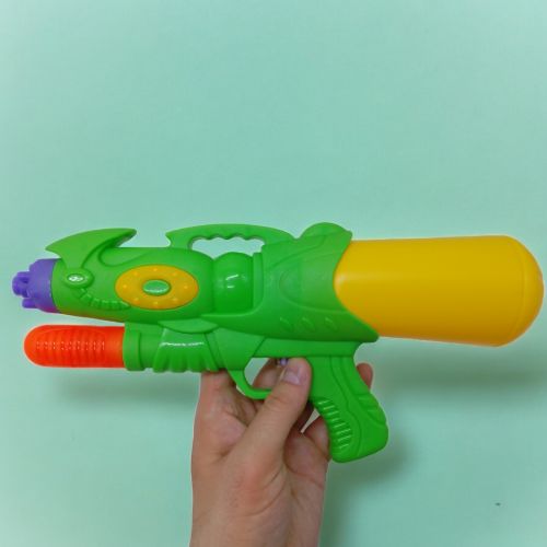 Водна зброя з накачуванням – це іграшковий пістолет, призначений для стрільби струменем води. Для створення тиску та пострілу, у зброї передбачена система накачування. Треба вручну нагнітати повітря в резервуар, після чого вода випускається під тиском, створюючи потужний і далекобійний струмінь. Ця зброя ідеально підходить для активних ігор на свіжому повітрі та гарантує масу веселощів. Розмір – 30 см.