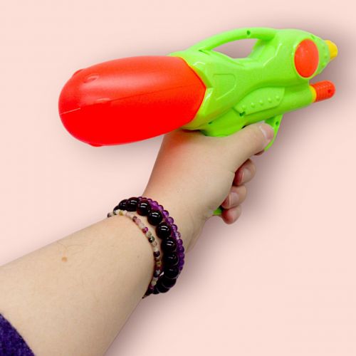 Пластиковий водний пістолет невеликого розміру. Щоб пістолет стріляв, потрібно заповнити водою спеціальний відсік. Розмір пістолета – 26х13х5 см. Чудово підійде для активного відпочинку на вулиці. Виконаний з якісних і безпечних матеріалів. Для дітей старше трьох років.