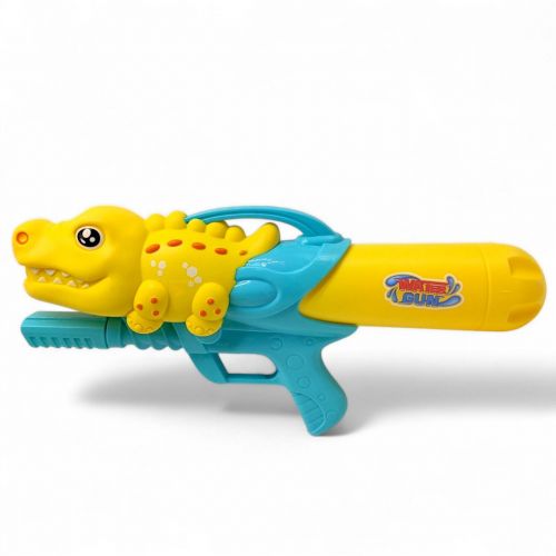 Водяна зброя, щоб намочити кожного хто стане на твоєму шляху! – але краще не попадати в обличчя. Оформлене у вигляді блакитного крокодила, з жовтими елементами. Розмір – 41 см. Виготовлений з комбінованих матеріалів. Рекомендовано для діток старше 3-х років.