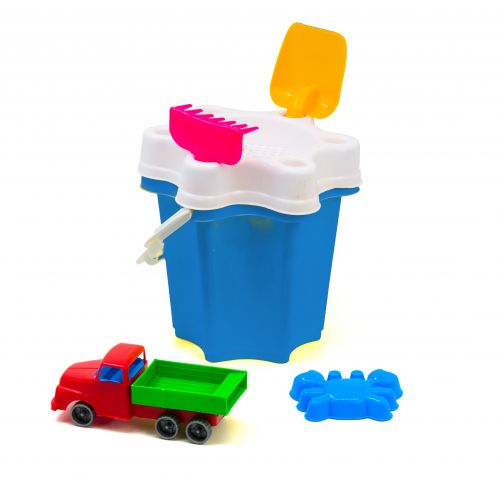 Відро “Квіточка” з машинкою і пісочним набором (синє)