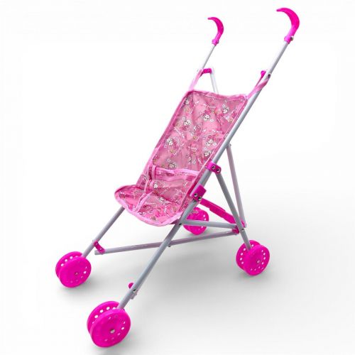 Візок для ляльок виконаний у яскравому рожевому кольорі з декоративним текстильним сидінням із принтом аніме-персонажів. Конструкція передбачає металевий каркас та тканинну посадкову частину. Модель легко складається, що дозволяє зручно транспортувати або зберігати її без зайвого місця.