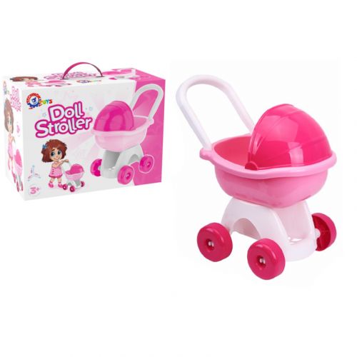 Яскрава пластикова коляска з люлькою для ляльок. Виконана з якісного та міцного пластику. Візок призначений для невеликих ляльок або м’яких іграшок. Розмір коляски у зібраному вигляді 48х48х29 см.